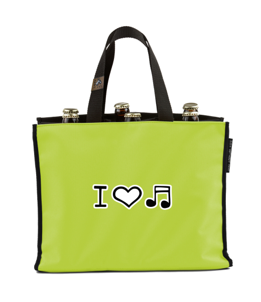 PIVO NOSIČ - taška na pivo s potiskem 1067 I LOVE MUSIC v barvě GREEN LIMET