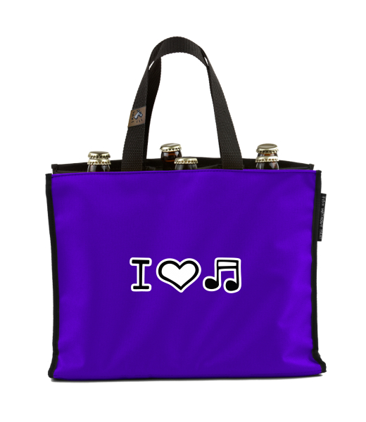PIVO NOSIČ - taška na pivo s potiskem 1067 I LOVE MUSIC v barvě VIOLET