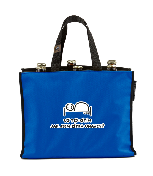 PIVO NOSIČ - taška na pivo s potiskem 1200 UŽ TEĎ CÍTÍM JAK JSEM ZÍTRA UNAVENÝ v barvě CLASSIC BLUE