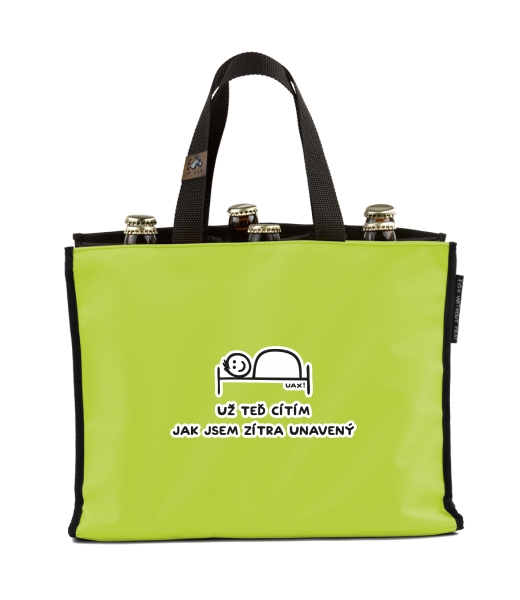PIVO NOSIČ - taška na pivo s potiskem 1200 UŽ TEĎ CÍTÍM JAK JSEM ZÍTRA UNAVENÝ v barvě GREEN LIMET
