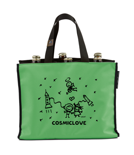 Vyrábíme udržitelné oblečení UAX! - ručně šité v Česku uaxDoplňky uaxVšechny produktyTašky a pytlíkyPIVO NOSIČpotisk 1207 - COSMICLOVEBRIGHT GREEN