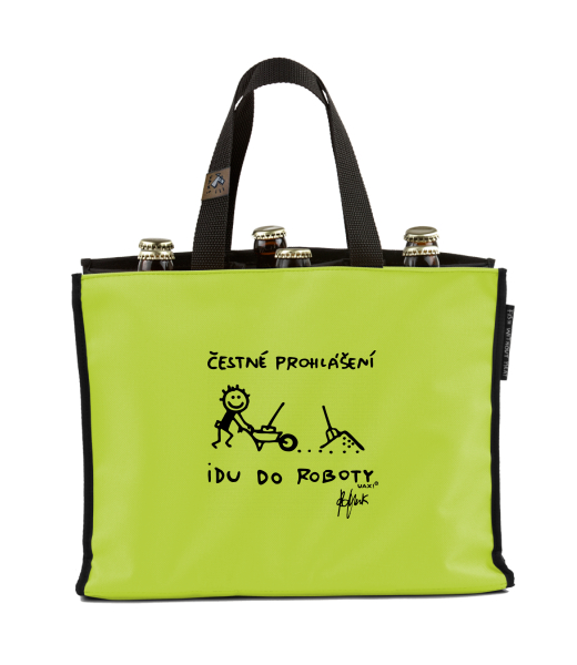 PIVO NOSIČ - taška na pivo s potiskem 1303 ČESTNÉ PROHLÁŠENÍ IDU DO ROBOTY v barvě GREEN LIMET
