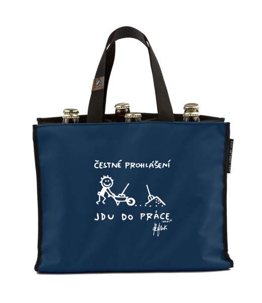 PIVO NOSIČ - taška na pivo s potiskem 1304 ČESTNÉ PROHLÁŠENÍ JDU DO PRÁCE v barvě MIDNIGHT BLUE