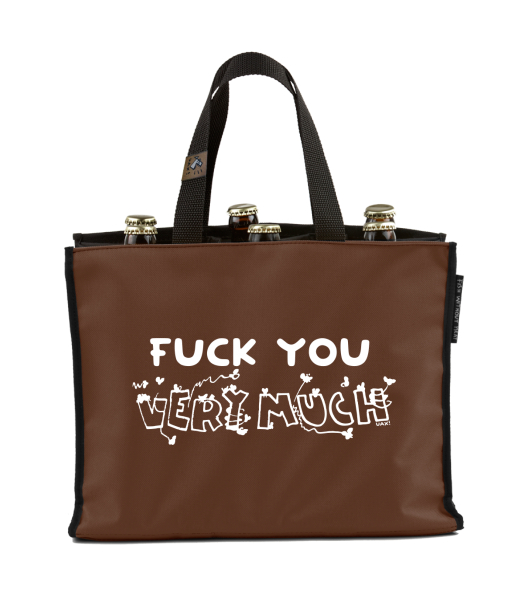 PIVO NOSIČ - taška na pivo s potiskem 1358 FU VERU MUCH v barvě BROWN SUGAR