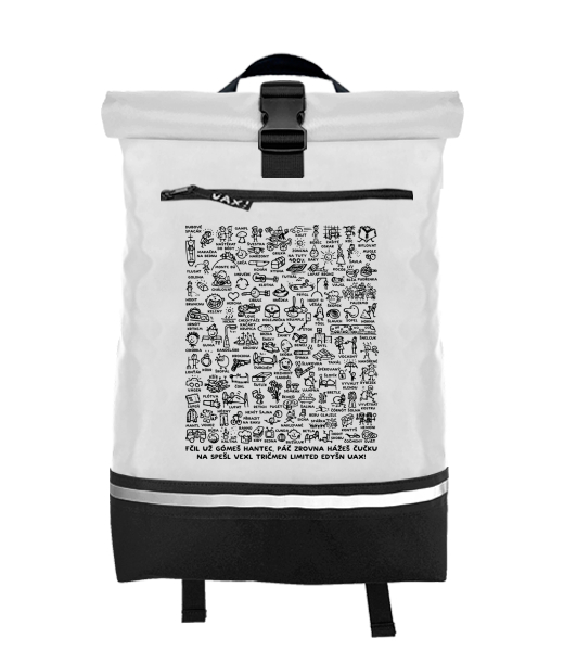 Vyrábíme udržitelné oblečení UAX! - ručně šité v Česku uaxDoplňky uaxVšechny produktyVaky a batohyBATOH ROLL-TOP LARGEpotisk 1261 - BRNĚNSKÝ HANTECWHITE