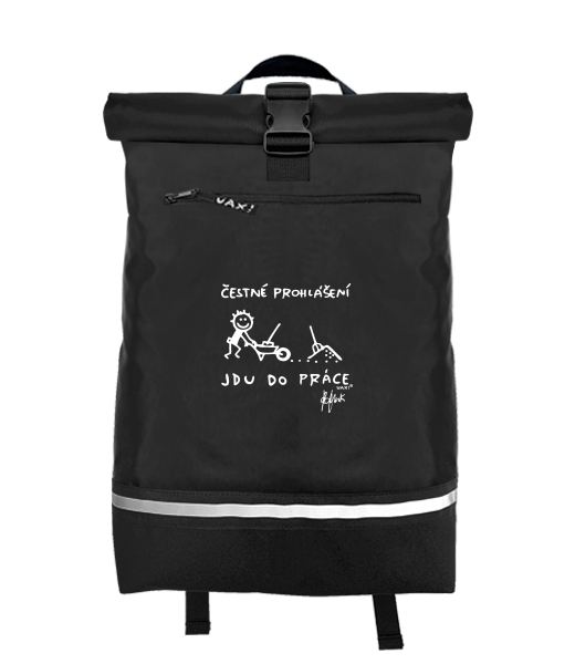 Originální batoh ROLL-TOP LARGE s potiskem 1304 ČESTNÉ PROHLÁŠENÍ JDU DO PRÁCE v barvě BLACK