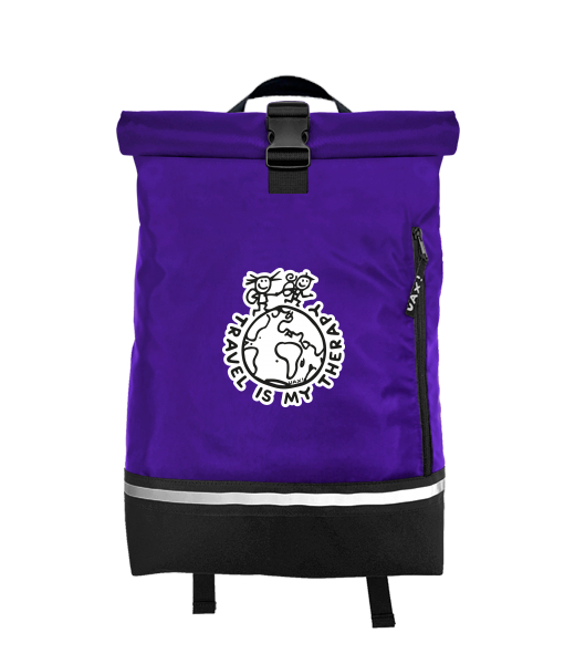 Originální batoh ROLL-TOP SMALL s potiskem 1240 TRAVEL IS MY THERAPY v barvě VIOLET