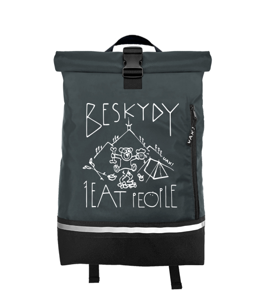 Vyrábíme udržitelné oblečení UAX! - ručně šité v Česku uaxDoplňky uaxVšechny produktyVaky a batohyBATOH ROLL-TOP SMALLpotisk 1241 - I EAT PEOPLE BESKYDYGREY INK