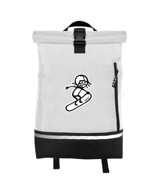 Vyrábíme udržitelné oblečení UAX! - ručně šité v Česku uaxDoplňky uaxVšechny produktyVaky a batohyBATOH ROLL-TOP SMALLpotisk 1243 - SNOWBOARDWHITE