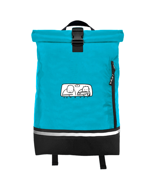 Vyrábíme udržitelné oblečení UAX! - ručně šité v Česku uaxDoplňky uaxVšechny produktyVaky a batohyBATOH ROLL-TOP SMALLpotisk 84 - LONG WAYBLUE ATOLL
