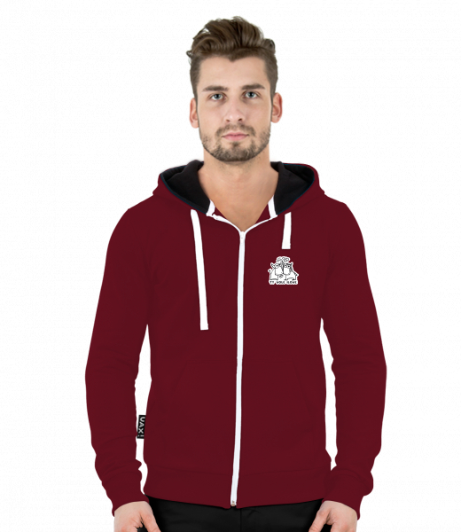 Pánská mikina vyštíhlená, celopropínací na zip s potiskem Golf kolekce pro muže s potiskem 1089 TY VOLE I LOVE v barvě DARK RED