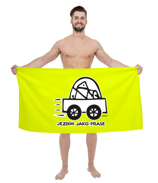 Vyrábíme udržitelné oblečení UAX! - ručně šité v Česku uaxMuži uaxGolf kolekceRučníky a osuškyOSUŠKA S POTISKEMpotisk 1072 - JEZDÍM JAKO PRASEGREEN LIMET