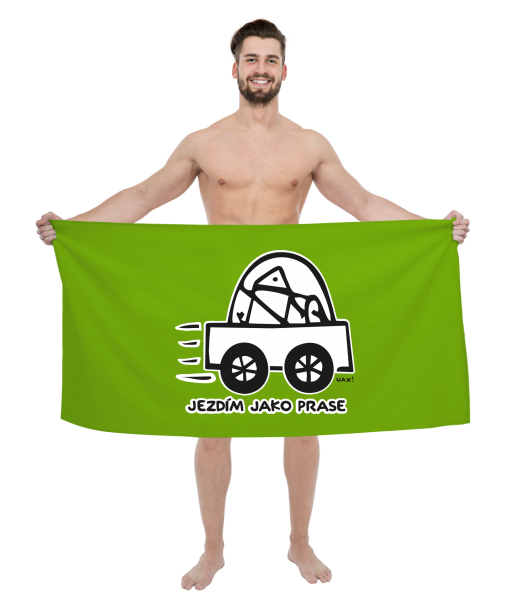 Vyrábíme udržitelné oblečení UAX! - ručně šité v Česku uaxMuži uaxGolf kolekceRučníky a osuškyOSUŠKA S POTISKEMpotisk 1072 - JEZDÍM JAKO PRASEPARROT GREEN