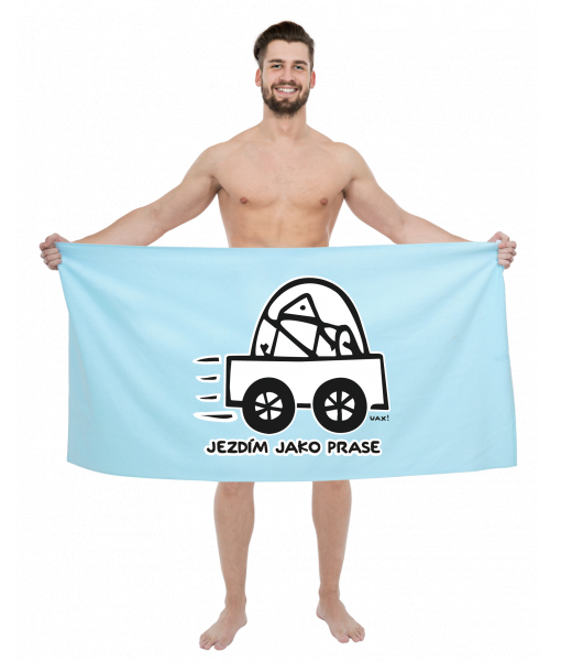Vyrábíme udržitelné oblečení UAX! - ručně šité v Česku uaxMuži uaxGolf kolekceRučníky a osuškyOSUŠKA S POTISKEMpotisk 1072 - JEZDÍM JAKO PRASEPASTEL BLUE