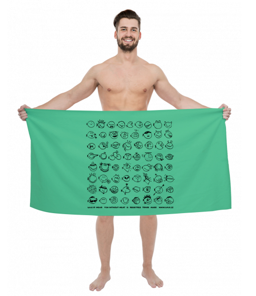 Vyrábíme udržitelné oblečení UAX! - ručně šité v Česku uaxMuži uaxGolf kolekceRučníky a osuškyOSUŠKA S POTISKEMpotisk 1085 - FISH WITHOUT MEAT 2EUCALYPTO GREEN