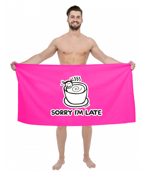 Vyrábíme udržitelné oblečení UAX! - ručně šité v Česku uaxMuži uaxGolf kolekceRučníky a osuškyOSUŠKA S POTISKEMpotisk 1087 - SORRY IM LATEFLUO PINK