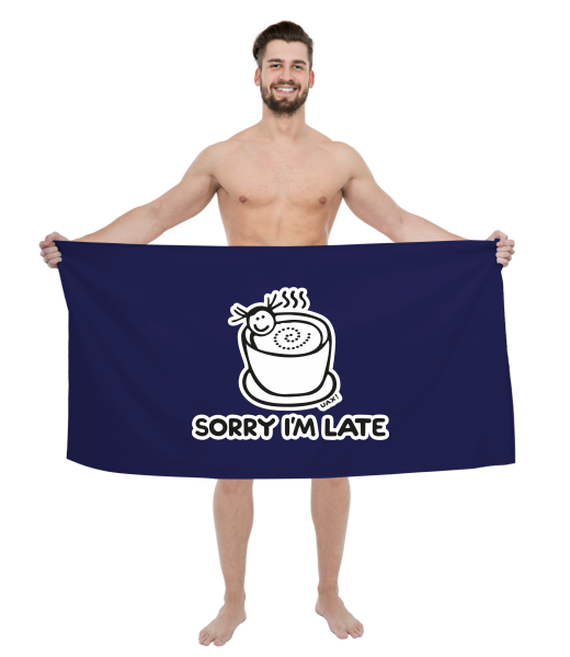 Vyrábíme udržitelné oblečení UAX! - ručně šité v Česku uaxMuži uaxGolf kolekceRučníky a osuškyOSUŠKA S POTISKEMpotisk 1087 - SORRY IM LATEMIDNIGHT BLUE