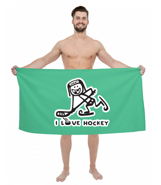 Vyrábíme udržitelné oblečení UAX! - ručně šité v Česku uaxMuži uaxGolf kolekceRučníky a osuškyOSUŠKA S POTISKEMpotisk 1100 - I LOVE HOCKEYEUCALYPTO GREEN