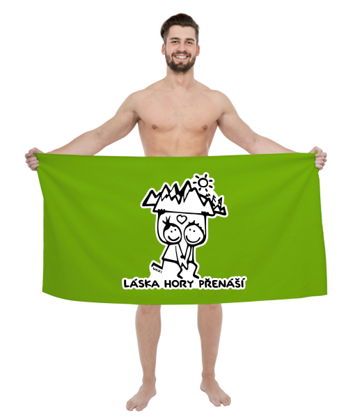 Originální osuška Golf kolekce pro muže s potiskem 1128 LÁSKA HORY PŘENÁŠÍ v barvě PARROT GREEN