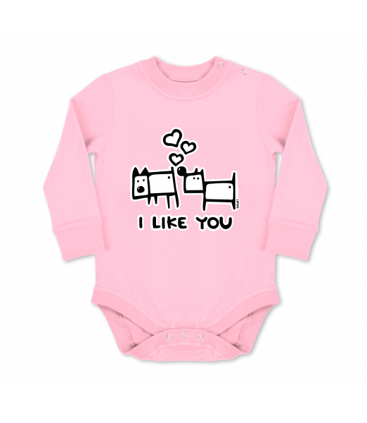Dětské body dlouhý rukáv Lyžařská kolekce pro muže s potiskem 1066 I LIKE YOU v barvě BABY PINK
