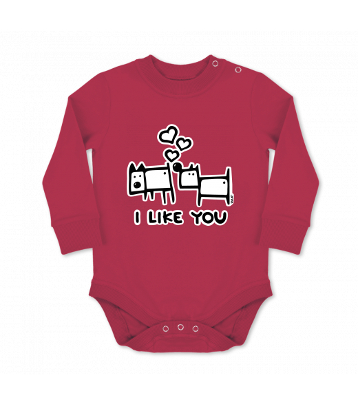 Dětské body dlouhý rukáv Lyžařská kolekce pro muže s potiskem 1066 I LIKE YOU v barvě CHILLY PEPPER RED