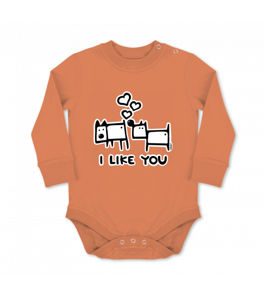 Dětské body dlouhý rukáv Lyžařská kolekce pro muže s potiskem 1066 I LIKE YOU v barvě MANDARIAN ORANGE