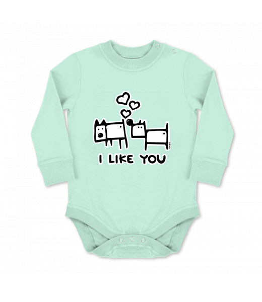 Dětské body dlouhý rukáv Lyžařská kolekce pro muže s potiskem 1066 I LIKE YOU v barvě MINT