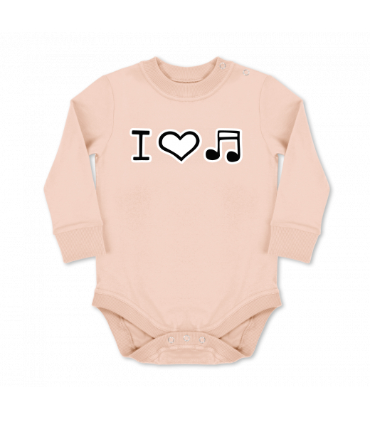 Dětské body dlouhý rukáv Lyžařská kolekce pro muže s potiskem 1067 I LOVE MUSIC v barvě CAPPUCINO