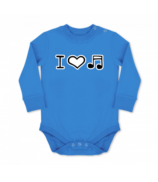 Dětské body dlouhý rukáv Lyžařská kolekce pro muže s potiskem 1067 I LOVE MUSIC v barvě CAPRI BLUE