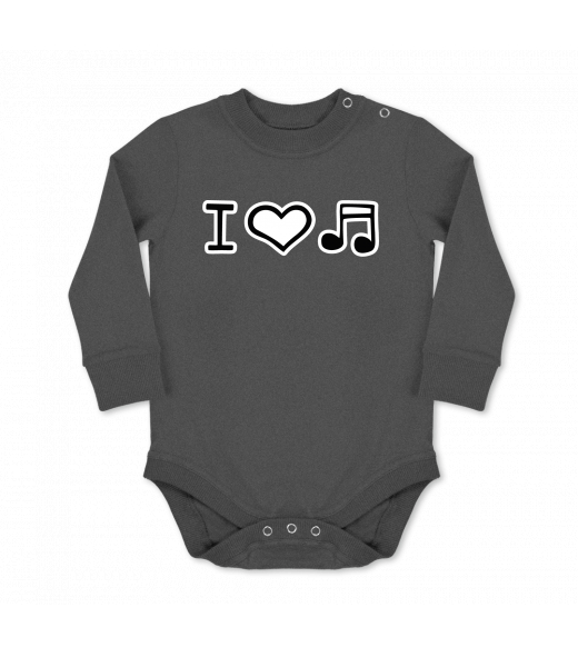 Dětské body dlouhý rukáv Lyžařská kolekce pro muže s potiskem 1067 I LOVE MUSIC v barvě GRAFIT