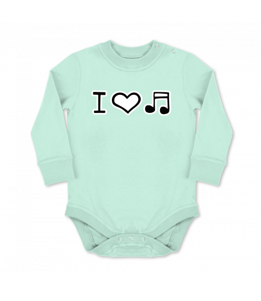 Dětské body dlouhý rukáv Lyžařská kolekce pro muže s potiskem 1067 I LOVE MUSIC v barvě MINT