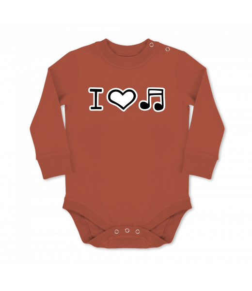 Dětské body dlouhý rukáv Lyžařská kolekce pro muže s potiskem 1067 I LOVE MUSIC v barvě TERRA