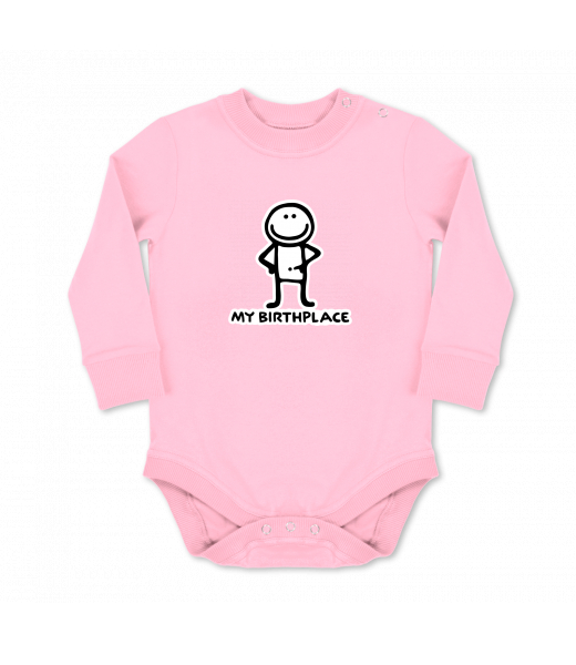 Dětské body dlouhý rukáv Lyžařská kolekce pro muže s potiskem 1069 MY BIRTHPLACE v barvě BABY PINK