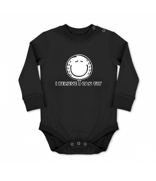 Dětské body dlouhý rukáv Lyžařská kolekce pro muže s potiskem 1070 I BELIEVE I CAN FLY v barvě BLACK