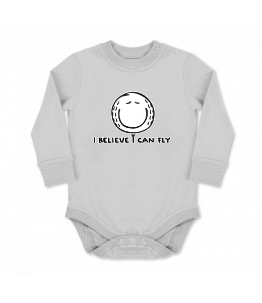 Dětské body dlouhý rukáv Lyžařská kolekce pro muže s potiskem 1070 I BELIEVE I CAN FLY v barvě CEMENT