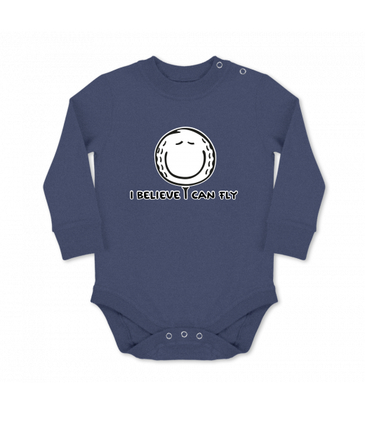 Dětské body dlouhý rukáv Lyžařská kolekce pro muže s potiskem 1070 I BELIEVE I CAN FLY v barvě JEANS
