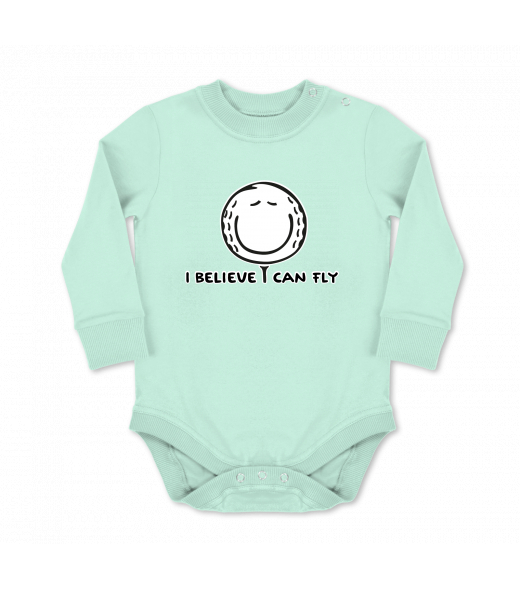 Dětské body dlouhý rukáv Lyžařská kolekce pro muže s potiskem 1070 I BELIEVE I CAN FLY v barvě MINT