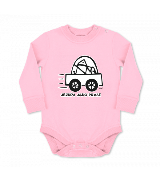 Vyrábíme udržitelné oblečení UAX! - ručně šité v Česku uaxMuži uaxLyžařská kolekceBodýčkaDĚTSKÉ BODY LONGpotisk 1072 - JEZDÍM JAKO PRASEBABY PINK