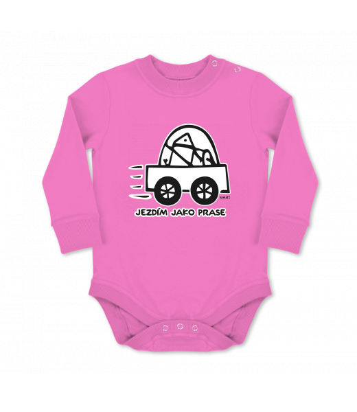 Vyrábíme udržitelné oblečení UAX! - ručně šité v Česku uaxMuži uaxLyžařská kolekceBodýčkaDĚTSKÉ BODY LONGpotisk 1072 - JEZDÍM JAKO PRASECLASSIC PINK