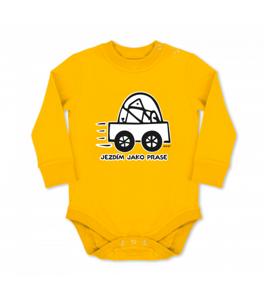 Vyrábíme udržitelné oblečení UAX! - ručně šité v Česku uaxMuži uaxLyžařská kolekceBodýčkaDĚTSKÉ BODY LONGpotisk 1072 - JEZDÍM JAKO PRASEGOLDEN CREAM