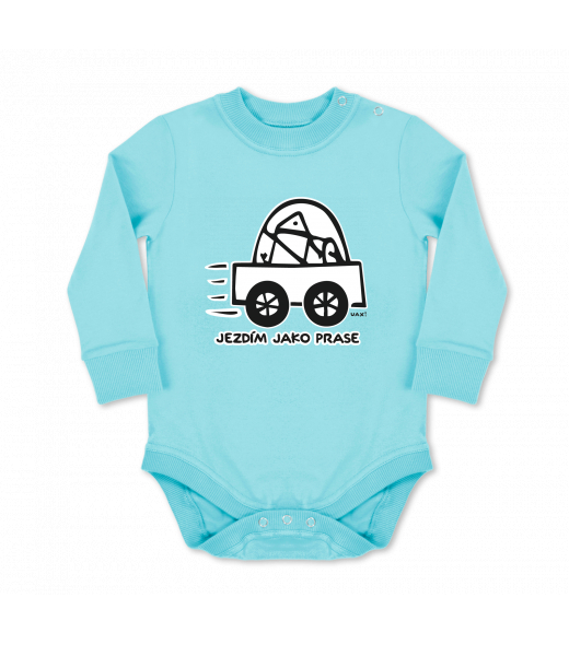 Vyrábíme udržitelné oblečení UAX! - ručně šité v Česku uaxMuži uaxLyžařská kolekceBodýčkaDĚTSKÉ BODY LONGpotisk 1072 - JEZDÍM JAKO PRASEPASTEL BLUE