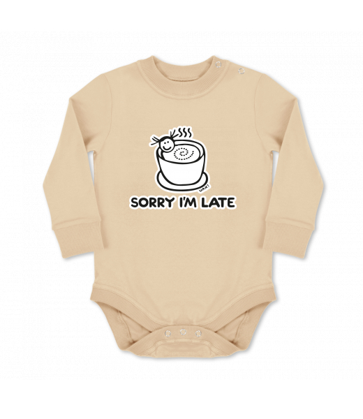 Dětské body dlouhý rukáv Lyžařská kolekce pro muže s potiskem 1087 SORRY IM LATE v barvě CARAMEL