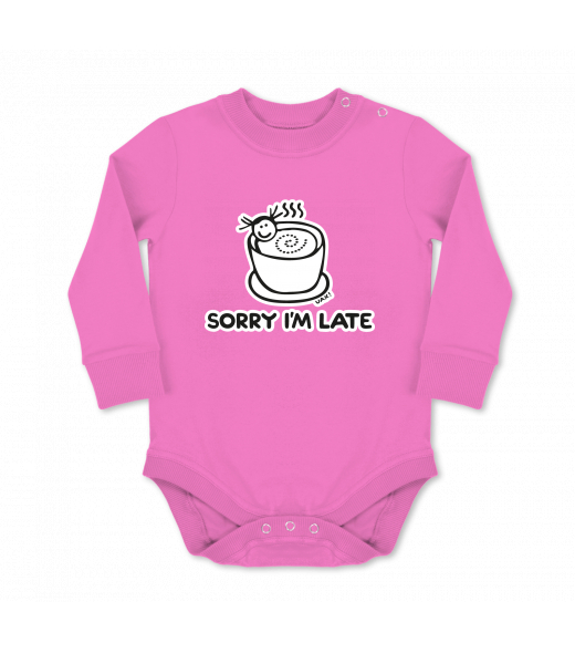 Dětské body dlouhý rukáv Lyžařská kolekce pro muže s potiskem 1087 SORRY IM LATE v barvě CLASSIC PINK