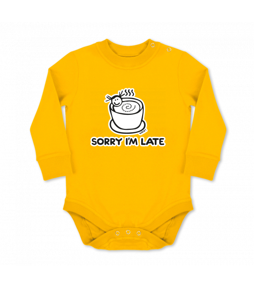 Dětské body dlouhý rukáv Lyžařská kolekce pro muže s potiskem 1087 SORRY IM LATE v barvě GOLDEN CREAM