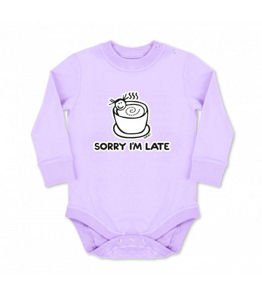 Dětské body dlouhý rukáv Lyžařská kolekce pro muže s potiskem 1087 SORRY IM LATE v barvě LAVENDER