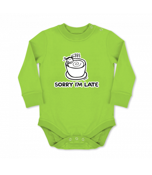 Dětské body dlouhý rukáv Lyžařská kolekce pro muže s potiskem 1087 SORRY IM LATE v barvě PARROT GREEN
