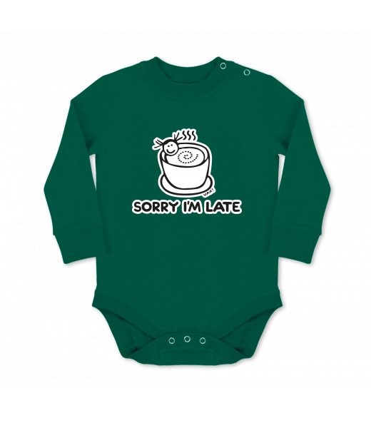 Dětské body dlouhý rukáv Lyžařská kolekce pro muže s potiskem 1087 SORRY IM LATE v barvě UNIVERSITY GREEN