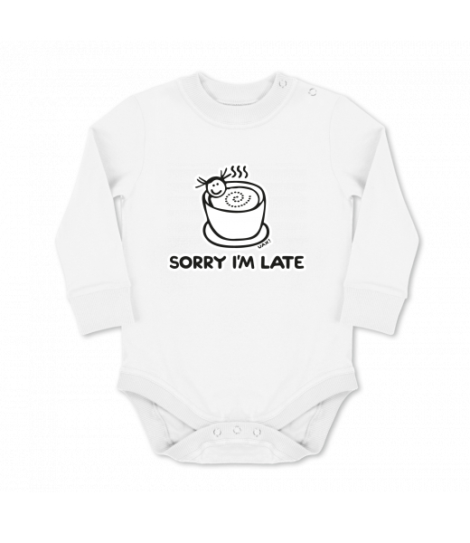 Dětské body dlouhý rukáv Lyžařská kolekce pro muže s potiskem 1087 SORRY IM LATE v barvě WHITE