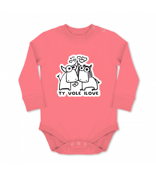 Dětské body dlouhý rukáv Lyžařská kolekce pro muže s potiskem 1089 TY VOLE I LOVE v barvě LOSOSOVA