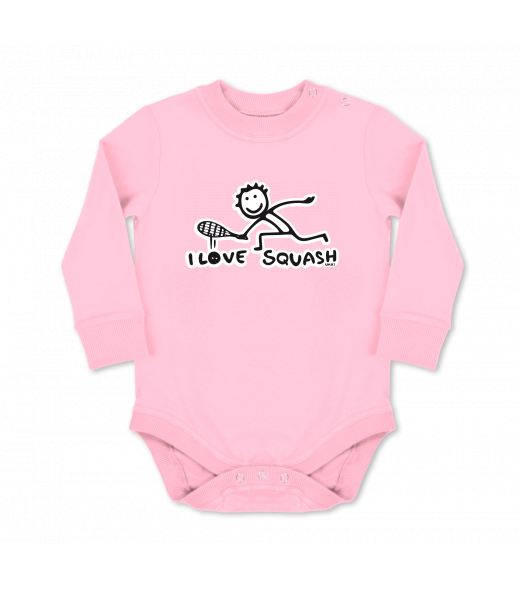 Dětské body dlouhý rukáv Lyžařská kolekce pro muže s potiskem 1091 I LOVE SQUASH v barvě BABY PINK